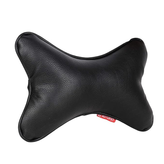AUTOFIT Black Leather Neck Rest Pillow for car (Set of 2 Pieces) Universal for All Cars